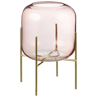 Perfect for adding personality to living and dining rooms, this pink candle holder on a gold stand offers understated luxury.